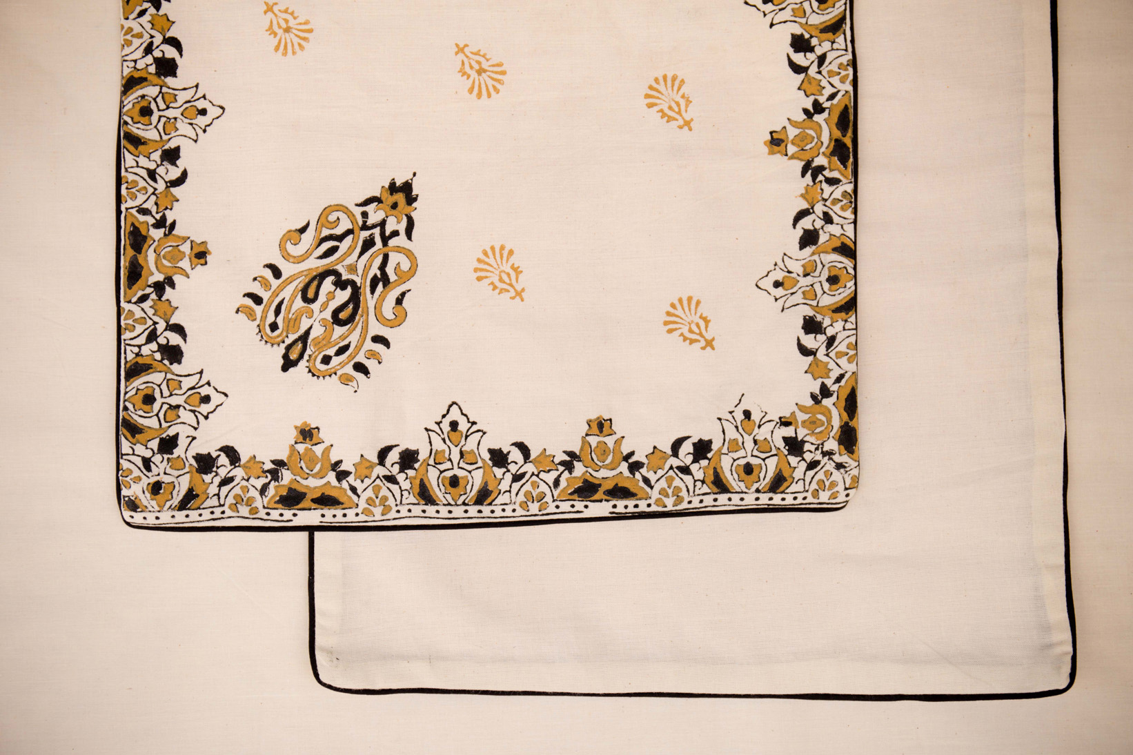 Black beige Blockprinted mats with plain back.