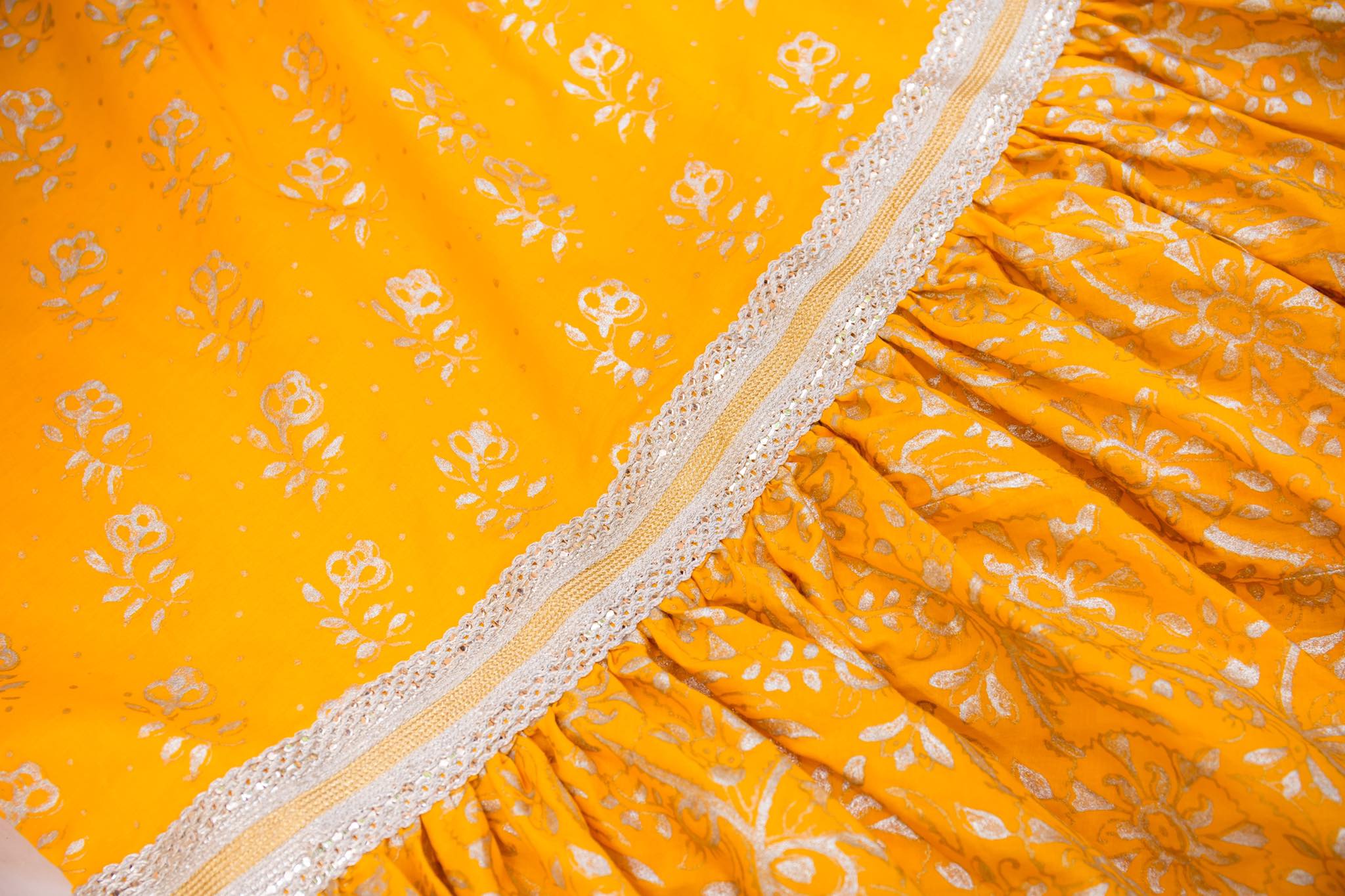 Gharara set comes with unstitched shirt, finished dupatta and stitched, finished gharara. Rs. 30,000.