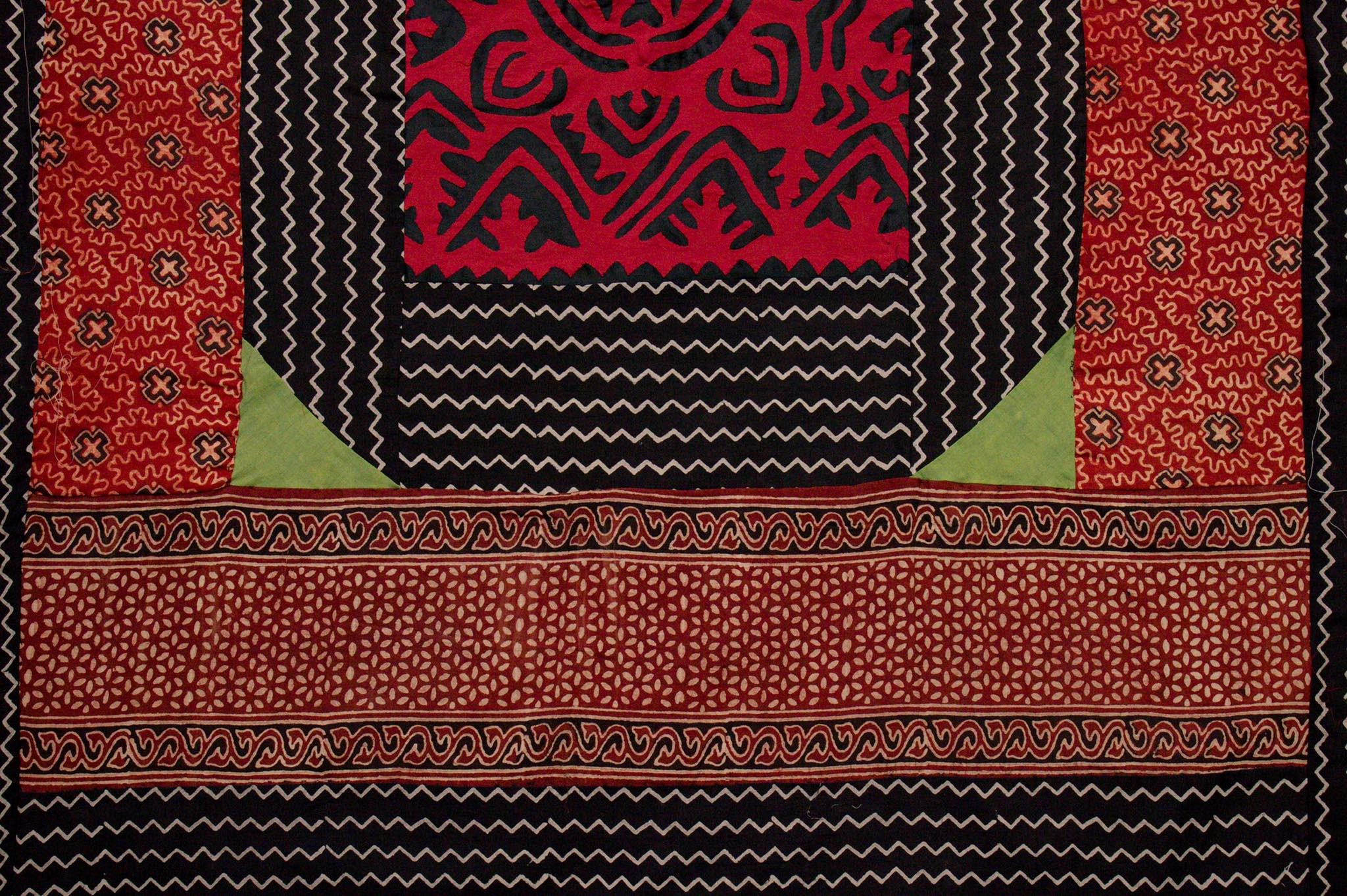 Brilliant ajrak in maroon and beige and black with a maroon and black rilli center