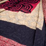 Brilliant ajrak in green and black with a olive and black rilli center. Size: 75”x45”.
