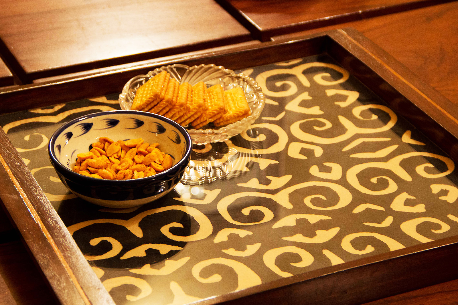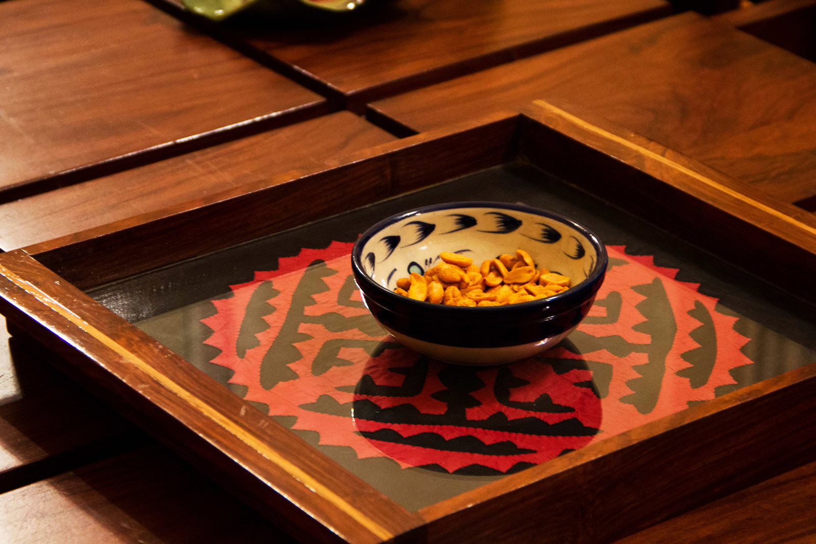 Square red and black tray. Rs. 5500.